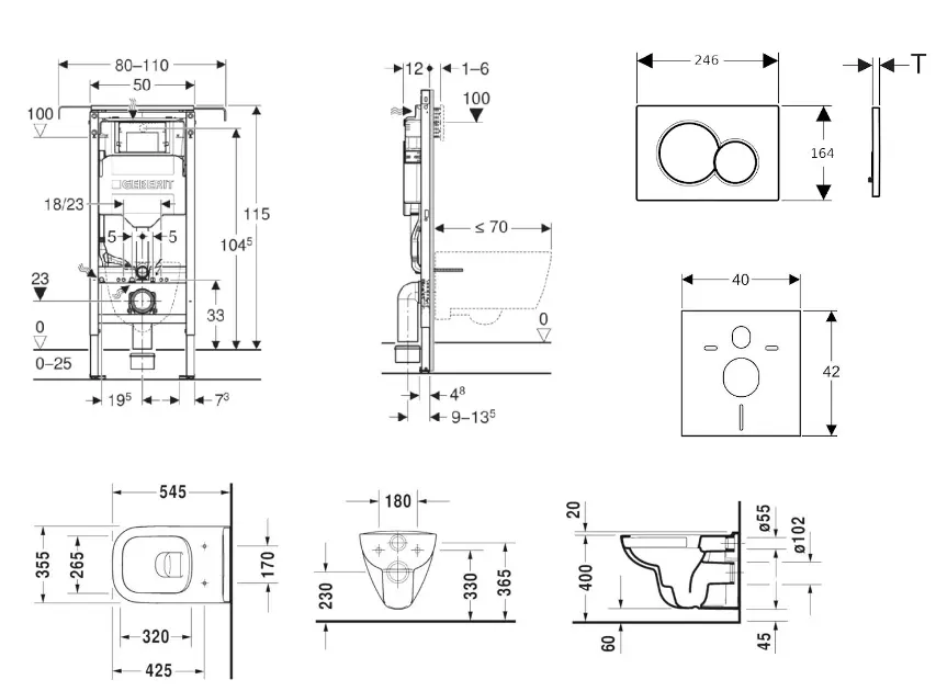 Set med skiljeväggsinstallation, toalett, toalettsits och manöverknapp... Se hela produktbeskrivningen