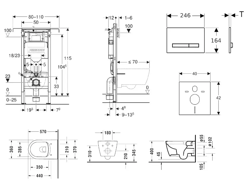Set med skiljeväggsinstallation, toalett, toalettsits och manöverknapp... Se hela produktbeskrivningen