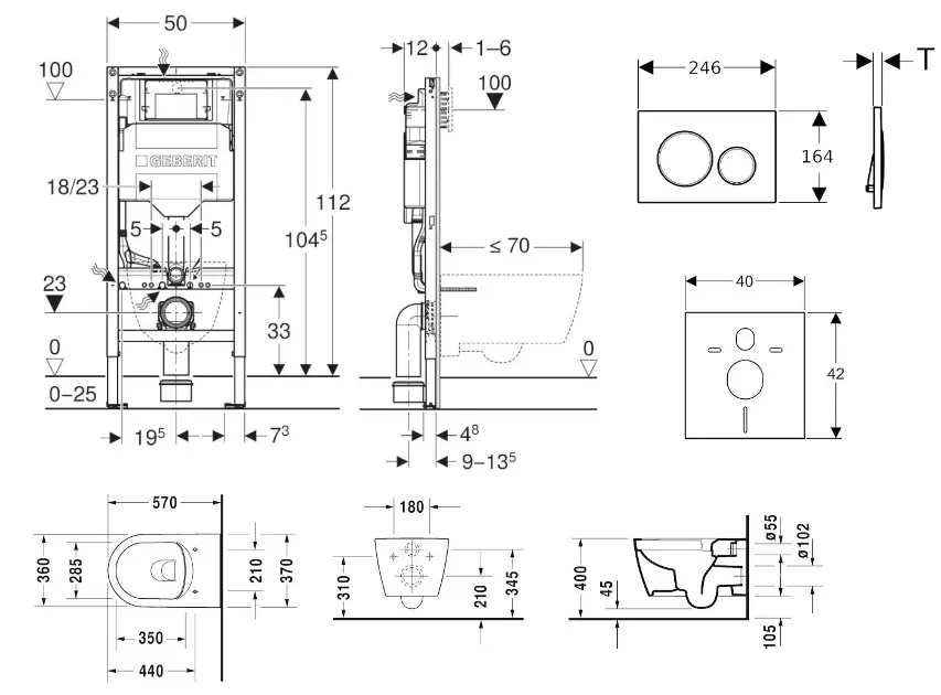 Set med skiljeväggsinstallation, toalett, toalettsits och manöverknapp... Se hela produktbeskrivningen