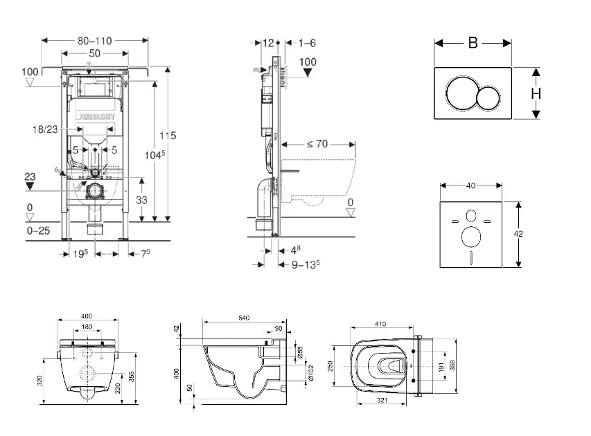 Elementet är förankrat i golvet med två stöd som är kontinuerligt utdragbara och därmed möjliggör individuell justering av toalettskålens höjd. Längre, äldre och funktionshindrade personer kommer att uppskatta detta särskilt när de ska resa sig upp och ner. Utdragbara horisontella distanser säkerställer enkel och tillförlitlig installation även i olika rumsbredder. Demontering av ventilerna (påfyllning och tömning) är enkel tack vare en tillräckligt stor serviceöppning som är dold bakom manöverknappen. Beklädnaden och fodret kan fästas direkt på elementets ram och därmed minskas inte toalettutrymmet i onödan. Duofix-elementets konstruktion gör att det kan installeras på ett sådant sätt att det kan tas bort, t.ex. vid ombyggnad av stigarledningar i installationsschaktet. Duofix har alla uttag för avfall, vatten och armaturer fixerade, vilket förenklar installationen och minskar risken för felkoppling till ett minimum.