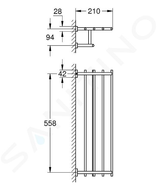 Handdukshållare/hylla Material: metall längd 558 mm dold infästning... Se hela produktbeskrivningen