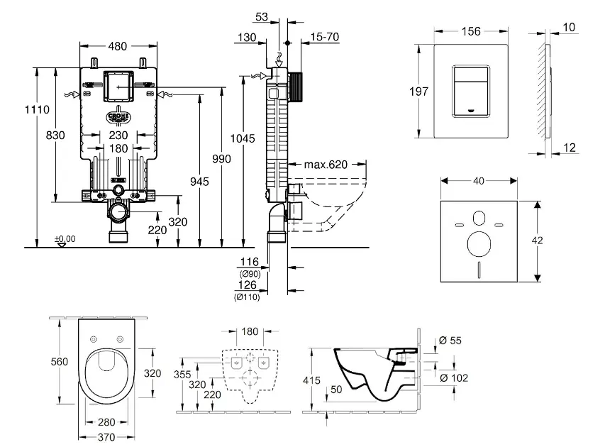 Installationsmodul Grohe Uniset för vägghängd WC, med spolcistern GD 2