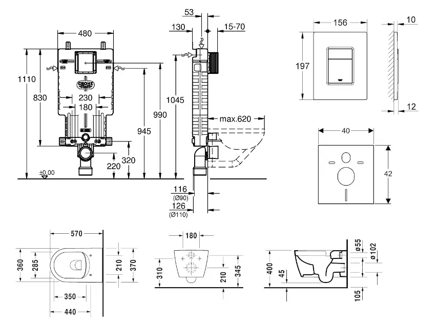 Installationsmodul Grohe Uniset för vägghängd WC, med spolcistern GD 2