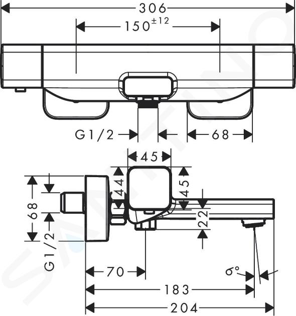 Väggmonterad termostatisk badkran 2 apparater centrumavstånd: 150 mm ±... Se hela produktbeskrivningen