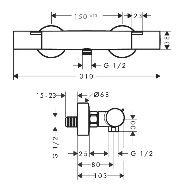 Väggmonterad duschtermostat med temperaturbegränsning