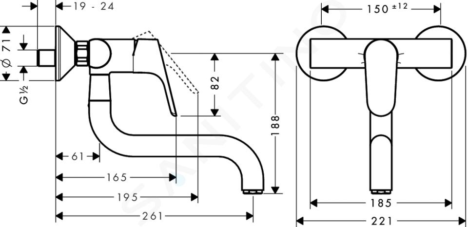 Väggkran för kök 180° rotationsområde normal ström centrumavstånd 150... Se hela produktbeskrivningen