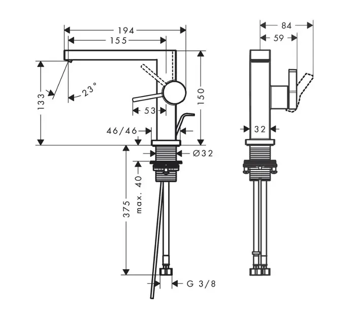 Tvättställsblandare med pip och spak