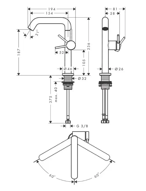 Tvättställsblandare med pip och spak färg krom höjd på kranen 236 mm... Se hela produktbeskrivningen