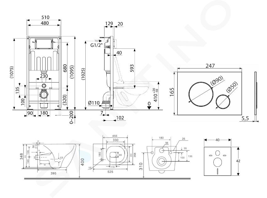 Förmonterad väggmonteringsram för vägghängd toalett