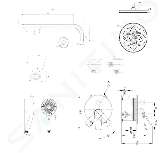 takdusch 260 mm med 350 mm duscharm