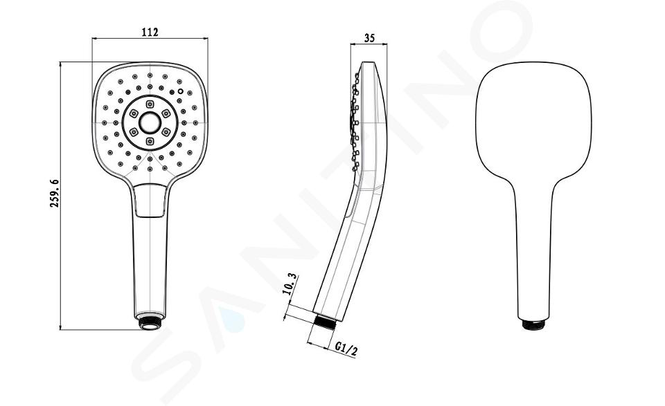 Handdusch diameter 130 mm 3 strållägen - regn, massage, blandad... Se hela produktbeskrivningen
