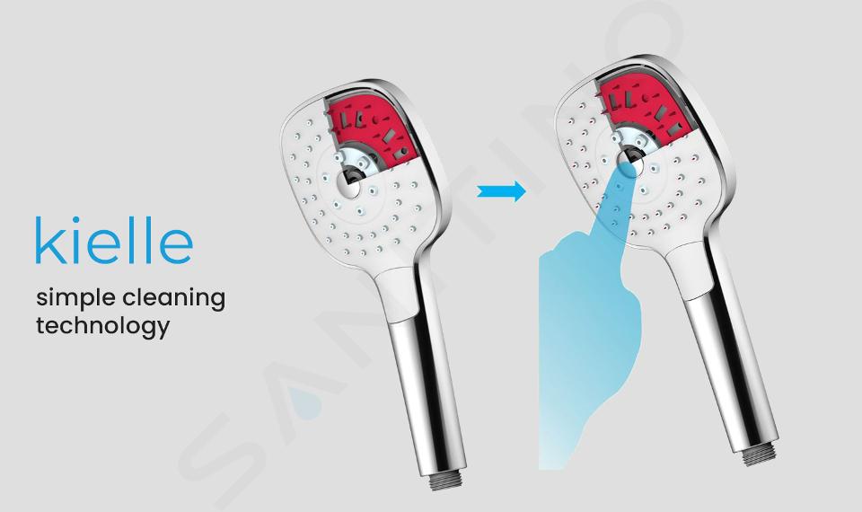 Den innovativa kielle Click&Clean-teknologin finns i duschhuvudena. Det är en mycket praktisk självrengörande funktion som gör underhållet enklare, säkerställer perfekt munstycksfunktion och förlänger produktens livslängd. Ett duschhuvud utrustat med denna teknologi har självrengörande munstycken som aktiveras genom att trycka på knappen i mitten av duschhuvudet. När knappen trycks in skjuts små nålar ut ur munstyckena för att ta bort kalk och andra avlagringar.