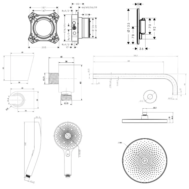 Duschsetet innehåller: termostatisk dold blandare Ecostat Comfort S... Se hela produktbeskrivningen