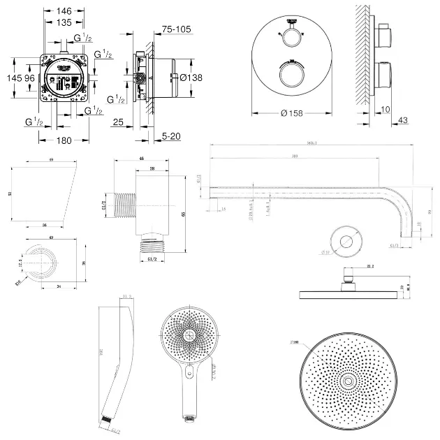 Duschsetet innehåller: termostatisk dold blandare Grohtherm komplett... Se hela produktbeskrivningen