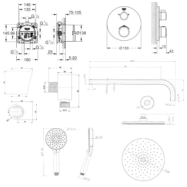 Duschsetet innehåller: termostatisk dold blandare Grohtherm komplett... Se hela produktbeskrivningen