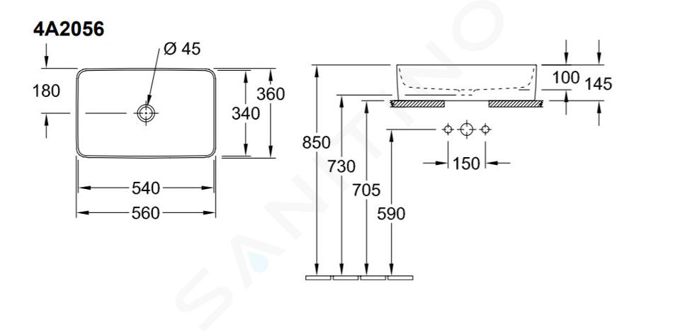 Tvättställ som kan placeras på en bänkskiva eller i ett badrumsskåp